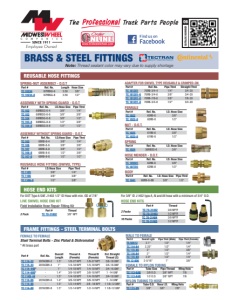 2 SLEEVE Part # Ref. No. Tube Size TC 1160-4 60AB-4 1/4" TC 1160-6 60AB-6 3/8" TC 1160-8 60AB-8 1/2" TC 1160-10 60AB-10 5/8" TC 1160-12 60AB-12 3/4" NUT Part # Ref. No. Tube Size TC 1161-4 61AB-4 1/4" TC 1161-6 61AB-6 3/8" TC 1161-8 61AB-8 1/2" TC 1161-10 61AB-10 5/8" UNION Part # Ref. No. Tube Size TC 1162-4 62AB-4 1/4" TC 1162-10 - 5/8" MALE CONNECTOR Part # Ref. No. Tube Size Pipe Thrd TC 1168-4A - 1/4" 1/8" TC 1168-4B VS68AB-4-4 1/4" 1/4" TC 1168-6A - 3/8" 1/8" TC 1168-12D - 3/4" 1/2" 45° ELBOW AIR BRAKE TO MALE PIPE Part # Ref. No. Tube Size Pipe Thrd TC 1174-8C VS279AB-8-6 1/2" 3/8" TC 1174-10D - 5/8" 1/2" MALE ELBOW Part # Ref. No. Tube Size Pipe Thrd TC 1169-4A - 1/4" 1/8" TC 1169-10D - 5/8" 1/2" UNION Tube Size FERRULE Ref. No. BRASS PUSH-LOCK Ref. No. COMPOSITE PUSH-LOCK 1/8" TC 1362-2 - TC PL1362-2 62PM-2 TC QL1362-2 5/32" TC 1362-25* - TC PL1362-25 62PM-5/32 TC QL1362-25 3/16" - - TC PL1362-3 62PM-3 - 1/4" TC 1362-4 62NTA-4 TC PL1362-4 62PMT-4 TC QL1362-4 5/16" - - TC PL1362-5* - - 3/8" TC 1362-6 62NTA-6 TC PL1362-6 62PMT-6 TC QL1362-6 3/8" Tube, 1/4 Tube - - TC PL1362-6B - - 1/2" TC 1362-8 - TC PL1362-8 62PMT-8 TC QL1362-8 5/8" TC 1362-10 62NTA-10 TC PL1362-10 62PMT-10 TC QL1362-10 3/4" TC 1362-12 62NTA-12 TC PL1362-12 62PMT-12 TC QL1362-12 UNION TEE Tube Size FERRULE Ref. No. BRASS PUSH-LOCK Ref. No. COMPOSITE PUSH-LOCK 1/8" - - TC PL1364-2 164PM-2 TC QL1364-2 5/32" - - TC PL1364-25* - - 1/4" TC 1364-4 264NTA-4 TC PL1364-4 164PMT-4 TC QL1364-4 3/8" TC 1364-6 264NTA-6 TC PL1364-6 164PMT-6 TC QL1364-6 1/2" TC 1364-8 264NTA-8 TC PL1364-8 164PMT-8 TC QL1364-8 5/8" TC 1364-10 264NTA-10 - - - 3/4" TC 1364-12 264NTA-12 TC PL1364-12 164PMT-12 - UNION ELBOW Tube Size FERRULE BRASS PUSH-LOCK Ref. No. COMPOSITE PUSH-LOCK 5/32" - - - TC QL1365-25 1/4" TC 1365-4 TC PL1365-4 165PMT-4 TC QL1365-4 3/8" TC 1365-6 TC PL1365-6 165PMT-6 TC QL1365-6 1/2" TC 1365-8 TC PL1365-8 165PMT-8 TC QL1365-8 5/8" TC 1365-10 - - - 3/4" - TC PL1365-12 - - A B C *Note: Non-DOT part D.O.T. AIR BRAKE FITTINGS - FOR NYLON TUBING D.O.T. AIR BRAKE FITTINGS - FOR COPPER TUBING Y UNION COMPOSITE PUSH-LOCK Tube OD (A) Tube OD (B) TC QL1363444 1/4" 1/4" TC QL1363446 1/4" 3/8" TC QL1363666 3/8" 3/8" PUSH-LOCK FITTING PLUG Part # Ref. No. Tube Size TC PL109-4 639PMT-4 1/4" TC PL109-6 639PMT-6 3/8" TC PL109-8 639PMT-8 1/2" REDUCING UNION TEE Tube Size A Tube Size B Tube Size C FERRULE BRASS PUSH-LOCK COMPOSITE PUSH-LOCK 3/8" 3/8" 1/4" TC 1364-664 TC PL1364664 TC QL1364664 1/2" 1/2" 3/8" TC 1364-886 - -