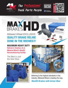 Midwest Wheel EXCLUSIVE: QUALITY BRAKE RELINE DONE IN THE MIDWEST! Adhering to the highest standards in the industry, Midwest Wheel is leading the way. MaxHD Brakes with Armor Blue MAXIMUM HEAVY DUTY Relined in Chariton, IA at Midwest Wheel’s MaxHD Remanufacturing Facility! The Best is Just the Next Stop. CATALOG NUMBER 08