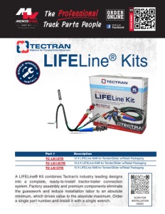MIDWESTWHEEL.COM MEMBER KANSAS CITY 5801 E. Front St. Main ....(816) 471-1552 Parts....(800) 821-7402 JOPLIN 2424 Stephens Blvd. Main ....(417) 717-6022 Parts....(866) 318-9111 SPRINGFIELD 812 Lillian Dr. ∙ Strafford, MO Main ....(417) 429-2476 Parts....(800) 785-3705 SIOUX CITY 1819 4th St. Main ....(712) 252-7969 Parts....(800) 943-3534 CEDAR RAPIDS 200 50th Ave. S.W. Main ....(319) 365-4453 Parts....(800) 332-5435 DES MOINES 1436 E. Ovid Ave. Main ....(515) 265-1491 Parts....(800) 888-0248 CLEAR LAKE 840 Hwy. 18 W. Main ....(641) 357-7101 Parts....(800) 397-5630 DAVENPORT 8502 Northwest Blvd. Main ....(563) 322-2671 Parts....(800) 553-1886 OMAHA 9770 S 142nd Street, Suite 1 Main ....(531) 239-3050 Parts....(800) 322-8757 NEBRASKA IOWA MISSOURI November 24, 2025 (15Tectran Kits) LIFELINE® KIT SELECTION GUIDE Maximum Distance using provided Suspension Custom Lengths Available Total Measurements A to B + B to C = 12’ LK-APL12T LKAPL135T LK-APL15T <6’ 6’ 7’ 8’ 9’ 10’ 11’ >11’ 15’ 13.5’ Tractor Trailer Measurement 1 A to B B to C At Full Right Turn Measurement 2 A to B + B to C Measurments Equals Desired Length See Chart Below Measure Distance Measure Distance At Full Right Turn Tractor Protection Valve TEC-CLAMP® Emergency Gladhand A B C Pre-installed 30” Maximum Distance B A B C B A TC LK12TR* 12’ TC LK135TR 13.5’ TC LK15TR 15’ Custom Lengths Available Total Measurements A to B + B to C += <6’ 6’ 7’ 8’ 9’ 10’ 11’ >11 Maximim Distance using provided Suspension LIFELINE® KIT SELECTION GUIDE Maximum Distance using provided Suspension Custom Lengths Available Total Measurements A to B + B to C = 12’ LK-APL12T LKAPL135T LK-APL15T <6’ 6’ 7’ 8’ 9’ 10’ 11’ >11’ 15’ 13.5’ Tractor Trailer Measurement 1 A to B B to C At Full Right Turn Measurement 2 A to B + B to C Measurments Equals Desired Length See Chart Below Measure Distance Measure Distance At Full Right Turn Tractor Protection Valve TEC-CLAMP® Emergency Gladhand A B C Pre-installed 30” Maximum Distance B A B C B A If the 5th wheel is a sliding 5th wheel the measurement should be taken with the 5th wheel slide to the rear of the tractor to find the maximum dimension needed for the installation. Whats Included: 1. TEC-360 CLAMP 2. Tender Kits - 16” dual spring tender & additional 25” dual spring tender 3. Bend Restrictors 4. LIFESwivel 5. Buffalo Plugs 6. WeatherSeal 7. Spiral Wrap 8. FLEXGrip-HD 9. 7-Way ArticFlex ABS Cable 10. Anodized Aluminum Gladhands *The TC LK12TR only comes with the 16” Dual Spring Tender. The 25” Dual Spring Tender is not included.