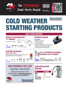• 200 watt - 120 Volt AC • UL/CSA approved • Includes 6” cordset • Quick grip handle protects hands from heat • Built-in thermostat maintains optimum temperature. Will not exceed 250°F MAGNETIC HEATER ZE 3400017 NOW STOCKING A FULL LINE ENGINE HEATERS Give One of Our Locations a Call or Visit our website at www.midwestwheel.com For Applications & Part Numbers ® CAB & CARGO HEATERS P/N Watt Volt AMP Fits Filter Diameter Plug Type Cord Length ZE 3400037 100 12 DC 8.3 3-3/4 to 5 Blunt 2 Wire 6" - 72" TANK/CIRCULATION HEATERS D.O.T. APPROVED REPLACEMENT STARTING FLUID CYLINDERS P/N Description Size Nozzle ZE 8200327 18 oz. 1” neck (used with most kits) 3” x 11” 1” - 20 ZE 8201277 21 oz. 1” neck (Fits Dieselmatic® kits) 4” x 8” 1” - 20 Threaded Cord Nut Silicone Connector WP Male Plug P/N Volts Amps Ga. Lengths ZE 8608059 125 15 14 (1) 7 ft. , (1)10 ft. For use with two heaters PARALLEL WEATHERPROOF “Y” CORDSET SILICONE PAD HEATER DIESEL FUEL FILTER Flexible silicone pad heater that snuggly wraps around metal diesel fuel filters with a hook and loop closure CATALOG NUMBER 16 P/N ZE 3308003 Watt 1500 Volt 120 Description 5/8” Inlet & Outlet Thermostat No