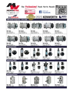 ME 5362 6 Gr. 125mm Dia. OEM# F69-6001-122 ME 5362S 6 Gr. 125mm Dia. OEM# F69-6003-122 ME 5366S 6 Gr. 125mm Dia. OEM# F69-6003-121 ME 54577 7 Gr. 126mm Dia. OEM# F69-1013 ME 5764 2 Gr. 132mm Dia. OEM# F69-6001-253 ME 5406 8 Gr. 123mm Dia. OEM# F69-6003-112 ME 5373 2 Gr. 125mm Dia. OEM# F69-6002-231 ME 7398 ME 1644 ME 1611 OEM# 540446BSM ME 1694 OEM# W2073001 OEM# 1000534258BSM OEM# 540057BSM 3” by 11” Pad Drier OEM# F37-1019 3” by 10-5/8” Pad Drier OEM# F37-1017-100 3” by 10-5/8” Pad Drier OEM# F37-1017-200 3” by 10-5/8” Pad Drier OEM# F37-6017 ME 7399 3” by 11” Pad Drier OEM# F37-6009 3” by 11” Pad Drier OEM# F37-6002 3” by 11” Pad Drier OEM# F37-6000 OEM# K251-571 3” by 11” Pad Drier OEM# F37-6008 OEM# K251-566 ME 7411 ME 7412 ME 7413 ME 7414 ME 54148 8 Gr. 119mm Dia. OEM# F69-1015-141 ME 5366 6 Gr. 125mm Dia. OEM# F69-6002-122 ME 7393 ME 7397 ME 7387 ME 7134 OEM Sanden Compressor - STD & SHD OEM Receiver Driers OEM Receiver Driers OEM Expansion Valves ME 54106 6 Gr. 125mm Dia. OEM# F69-1015-111 ME 16106 ME 1600 OEM# 308011BSM CATALOG NUMBER 22 www.midwestwheel.com NLINE www.midwestwheel.com Order NLINE™ 2023 KENWORTH