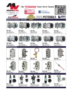 ME 5366S 6 Gr. 125mm Dia. OEM# F69-6003-121 ME 5366 6 Gr. 125mm Dia. OEM# F69-6002-122 ME 5365 8 Gr. 119mm Dia. OEM# F69-1003 ME 5362 6 Gr. 125mm Dia. OEM# F69-6001-122 ME 5365S 8 Gr. 119mm Dia. OEM# F69-6003-111 ME 5362S 6 Gr. 125mm Dia. OEM# F69-6003-122 ME 5373 2 Gr. 125mm Dia. OEM# F69-6002-231 ME 5406 8 Gr. 123mm Dia. OEM# F69-6003-112 OEM# 1308011BSM ME 1694 OEM# W2093001 OEM# 5X010343 ME 1688 OEM# 35011516 ME 7399 3” by 11” Pad Drier OEM# F37-6009 ME 7408 3.5” by 9” Pad Accum. OEM# F31-6063 ME 7414 3” by 11” Pad Drier OEM# F37-6017 ME 7412 3” by 10-5/8” Pad Drier OEM# F37-1017-100 ME 7413 3” by 10-5/8” Pad Drier OEM# F37-1017-200 ME 16100 ME 16106 OEM# 1000463486 OEM# 1000534258BSM OEM# Z9784001 ME 54106 6 Gr. 125mm Dia. OEM# F69-1015-111 ME 54148 8 Gr. 130mm Dia. OEM# F69-1015-141 OEM# 540056BSM OEM# 540057BSM ME 1654 Ori ce Tube - Red OEM# 5X010061 OEM Sanden Compressor - STD & SHD OEM Receiver Driers & Accumulators OEM Expansion Valves ME 1600 ME 1611 ME 1639 ME 1648 ME 16101 CATALOG NUMBER 22 www.midwestwheel.com NLINE www.midwestwheel.com Order NLINE™ 2023 PETERBILT