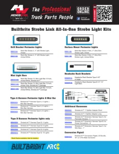 MIDWESTWHEEL.COM MEMBER KANSAS CITY 5801 E. Front St. Main ....(816) 471-1552 Parts....(800) 821-7402 JOPLIN 2424 Stephens Blvd. Main ....(417) 717-6022 Parts....(866) 318-9111 SPRINGFIELD 812 Lillian Dr. ∙ Strafford, MO Main ....(417) 429-2476 Parts....(800) 785-3705 SIOUX CITY 1819 4th St. Main ....(712) 252-7969 Parts....(800) 943-3534 CEDAR RAPIDS 200 50th Ave. S.W. Main ....(319) 365-4453 Parts....(800) 332-5435 DES MOINES 1436 E. Ovid Ave. Main ....(515) 265-1491 Parts....(800) 888-0248 CLEAR LAKE 840 Hwy. 18 W. Main ....(641) 357-7101 Parts....(800) 397-5630 DAVENPORT 8502 Northwest Blvd. Main ....(563) 322-2671 Parts....(800) 553-1886 OMAHA 9770 S 142nd Street, Suite 1 Main ....(531) 239-3050 Parts....(800) 322-8757 NEBRASKA IOWA MISSOURI September 24, 2024 (28Arc-Built Bright Strobe Lights) Type A Harness Perimeter lights & Mini Bar MAKE YEAR MODEL SUBMODEL GRILLE BRACKET ROOF BRACKET FORD 2023-2024 SUPER DUTY XL, XLT BB96GFA BB96RFA FORD 2023-2024 SUPER DUTY Lariat, Platium BB96GFB BB96RFA 2017-2022 SUPER DUTY XL, XLT, King Ranch, Platium BB96GFB BB96RFA 2021-2024 F150 STX, Lariat, Tremor, King Ranch BB96GFB BB96RFA 2018-2020 F150 XL, XLT, Lariat, King Ranch, Platium, Limited BB96GFB BB96RFA 2015-2017 F150 XL, XLT, Lariat BB96GFB BB96RFA FORD 2023-2024 SUPER DUTY XL Sport, Lariat, Lariat Sport, Limited BB96GGB BB96RFA 2017-2022 SUPER DUTY Lariat, Limited BB96GGB BB96RFA 2021-2024 F150 XL, XLT, Limited BB96GGB BB96RFA 2015-2017 F150 STX BB96GGB BB96RFA GM 2024 Silverado HD WT, Custom, LT, LTZ, BB96GGA BB96RGA 2022-2024 Silverado 1500 WT, Custom, Custom Trail Boss, BB96GGA BB96RGA 2020-2024 Sierra HD SLT, AT4 BB96GGA BB96RGA 2020-2024 Silverado HD High Country BB96GGA BB96RGA GM 2022-2024 Sierra 1500 Pro, LE, Elevation BB96GGB BB96RGA 2019-2021 Silverado 1500 LT/RST/LTZ/LT Trailboss, High Country BB96GGB BB96RGA 2020-2023 Silverdao HD LTZ BB96GGB BB96RGA GM 2020-2023 Silverado HD HD, WT, Custom, LT BB96GGC BB96RGA 2019-2021 Silverado 1500 Work Truck, Custom, Custom Trailboss BB96GGD BB96RGA GM 2022-2024 Silverado 1500 LT, RST, LT Trail Boss, LTZ BB96GFB BB96RGA GM 2015-2019 Silverado HD All Models BB96GGA BB96RGB GM 2022-2024 Sierra 1500 Pro, LE, Elevation (Regular Cab Only) BB96GGB BB96RGB 2019-2021 Silverado 1500 LT/RST/LTZ/LT Trailboss (Regular Cab Only) BB96GGB BB96RGB 2020-2023 Silverdao HD LTZ (Regular Cab Only) BB96GGB BB96RGB GM 2020-2023 Silverado HD HD, WT, Custom, LT (Regular Cab Only) BB96GGC BB96RGB 2020-2024 Silverado HD Chassis Cab BB96GGC BB96RGB GM 2016-2018 Silverado 1500 All Models BB96GFB BB96RGB GM 2023-2024 Canyon Elevation, AT4, AT4X, Denali BB96GFB BB96RGC 2015-2022 Canyon Denali BB96GFB BB96RGC 2023-2024 Colorado ZR2 BB96GFB BB96RGC GM 2021-2022 Canyon Elevation, AT4, AT4X BB96GGA BB96RGC GM 2015-2022 Canyon Base, SL, SLE, SLT, All Terrain BB96GGB BB96RGC 2021-2024 Colorado WT, LT, Trailboss, Z71 BB96GGB BB96RGC 2021-2022 Colorado ZR2 BB96GGB BB96RGC RAM 2019-2024 1500 All models (exclude classic) BB96GGB BB96RRA DODGE/RAM 2010-2024 2500-3500 All Models BB96GGB BB96RRB 2009-2018 1500 All Models BB96GGB BB96RRB 2019-2014 1500 Classic BB96GGB BB96RRB *Bulk Packs available. Ask for details.