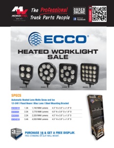 CATALOG NUMBER 29 EW2421H E92006H E92005H $50.31/EA E92005H ($77.40 WD) $47.79/EA EW2001H ($73.53 WD) $50.31/EA E92006H ($77.40 WD) $62.89/EA EW2421H ($96.75 WD) ORDER CODE: HEATED23 DETAILS • 16 unit minimum order quantity, includes mix-and-match • Orders must be placed by December 29, 2023 Orders estimated to ship in February, 2024 • Presale excludes additional level discounts • Contact your Sales Rep to order, must mention order code HEATED23 EW2001H FREE DISPLAY WITH WORKLIGHT ORDER Free-standing or slat wall mount. Fits worklight boxes. 3WARRANTY YEAR SPECS • Automatic Heated Lens Melts Snow And Ice • 12-24V | Flood Beam | Black Lens | Steel Mounting Bracket • EW2001H: • E92005H: • E92006H: • EW2421H: 1.3A | 1,740 RAW Lumens | 109mm H x 76mm L x 48mm D 2.2A | 2,770 RAW Lumens | 124mm H x 99mm Ø x 48mm D 2.2A | 2,320 RAW Lumens | 114mm H x 99mm L x 48mm D 3.4A | 4,930 RAW Lumens | 114mm H x 99mm L x 48mm D IP69K UK CA CISPR 25 HEATED WORKLIGHT SALE $39 / UNIT E92005H ($60 WD) $37 / UNIT EW2001H ($57 WD) $39 / UNIT E92006H ($60 WD) $49 / UNIT EW2421H ($75 WD) AILS Orders must be placed by December 29, 2023 • Orders estimated to ship in February, 2024 1.3A | 1,740 RAW Lumens | 4.3” H x 3.0” L x 1.9” D 2.2A | 2,770 RAW Lumens | 4.9” H x 3.9” Ø x 1.9” D 2.2A | 2,320 RAW Lumens | 4.5” H x 3.9” L x 1.9” D 3.4A | 4,930 RAW Lumens | 4.5” H x 3.9” L x 1.9” D SPECS Automatic Heated Lens Melts Snow and Ice 12-24V | Flood Beam | Blac Lens | Steel Mounting Bracket EW2001H 1.3A 1,740 RAW Lumens 4.3” H x 3.0” L x 1.9” D E92005H 2.2A 2,770 RAW Lumens 4.0” H x 3.9” O x 1.9” D E92006H 2.2A 2,320 RAW Lumens 4.5” H x 3.9” L x 1.9” D EW2421H 3.4A 4,930 RAW Lumens 4.5” H x 3.9” L x 1.9” D PURCHASE 16 & GET A FREE DISPLAY. FREE-STANDING OR SLAT WALL MOUNT.