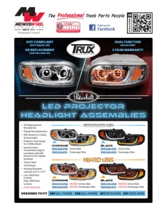 DUAL REVOLUTION LED TRXTLED-PCAB2XAB • 19 Diodes • 3.5" x 16.25" W • 3 Year Warranty PETERBILT CAB Amber Market to Blue Auxiliary DOT TO AUXILIARY MIDWESTWHEEL.COM MEMBER IOWA MISSOURI TRUCK PARTS SUPER STORE™ KANSAS CITY 5801 E. Front St. Main ....(816) 471-1552 Parts....(800) 821-7402 Fax ......(816) 471-0813 JOPLIN 2424 Stephens Blvd. Main ....(417) 717-6022 Parts....(866) 318-9111 Fax ......(417) 782-7126 SPRINGFIELD 812 Lillian Drive Main ....(417) 429-2476 Parts....(800) 785-3705 SIOUX CITY 1819 4th St. Main ....(712) 252-7969 Parts....(800) 943-3534 Fax ......(712) 252-6149 CEDAR RAPIDS 200 50th Ave. S.W. Main ....(319) 365-4453 Parts....(800) 332-5435 Fax ......(319) 365-6327 DES MOINES 1436 E. Ovid Ave. Main ....(515) 265-1491 Parts....(800) 888-0248 Fax ......(515) 265-4120 CLEAR LAKE 840 Hwy. 18 W. Main ....(641) 357-7101 Parts....(800) 397-5630 Fax ......(641) 357-8190 DAVENPORT 8502 Northwest Blvd. Main ....(563) 322-2671 Parts....(800) 553-1886 Fax ......(563) 322-5940 February 9, 2023 (29Peterbilt 389 Headlight) SUN VISOR - 14" BOWTIE HIGH & LOW ROOF SUN VISORS 379 FRONT GRILLE OVAL PUNCH OUTS - ALL YEARS PETERBILT TRXTSUN-P1 SOUTHERN STYLE, Stainless Steel TRXTP-1124 Long Hood Models, Stainless Steel • 379 & 378 (2005-2007) • 389, 388, 386, 385, 384, 357, 340, 335 & 330 (2007+) • Width: 67.5” | Sides: 14” | Drop: 7.5” • Bracket and hardware included • 1 Year Warranty • Peterbilt 379 Models, Long Hood • 42.25” x 33.75” • Hardware included • 1 Year Warranty LED LIGHTING • 19 Diodes • 3.5” x 16.25” W • 3 Year Warranty • 19 Diodes • 3.1" W • 3 Year Warranty PETERBILT CAB Marker D.O.T COMPLIANT TRXTLED-PCABC Clear Amber Marker TRXTLED-PCABC2 Clear Amber Marker TRXTLED-PCAB2 Amber Marker PETERBILT CAB With Housing - Markers D.O.T COMPLIANT • 24 Diodes • Peterbilt 357, 365, 367, 378, 379 • 3 Year Warranty TRXTLED-PSHC Clear Amber Turn & Marker PETERBILT SIDE LIGHT FOR HEADLIGHT Turn & Marker