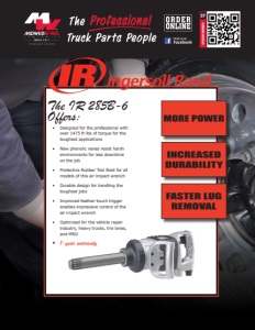 CATALOG NUMBER 37 INCREASED DURABILITY MORE POWER FASTER LUG REMOVAL The IR 285B-6 Offers: • Designed for the professional with over 1475 ft-lbs of torque for the toughest applications • New phenolic vanes resist harsh environments for less downtime on the job • Protective Rubber Tool Boot for all models of this air impact wrench • Durable design for handling the toughest jobs • Improved feather-touch trigger enables impressive control of the air impact wrench • Optimized for the vehicle repair industry, heavy trucks, tire lanes, and MRO • 1-year warranty